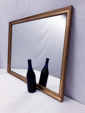This fantastic wall mounted mirror with a goldish wood frame measures 3cm x 86cm x 66high. The mirror is in good condition with minimal wear and tear on the frame as shown in the pics. The brackets are placed for the length of the mirror but one could have it both ways. Please view the pics carefully to fully appreciate this awesome framed wall mirror and to confirm the condition as they form part of the description