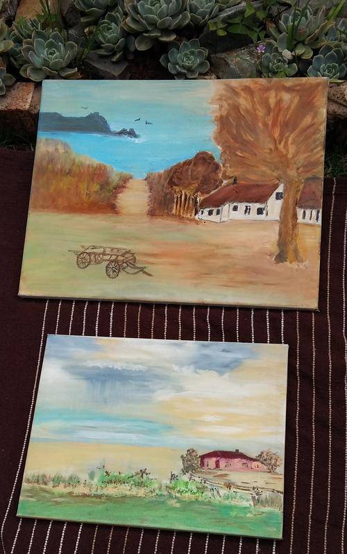 7 paintings in total all painted on raised canvas . paintings can be hung as is - no need to frame - see pics.