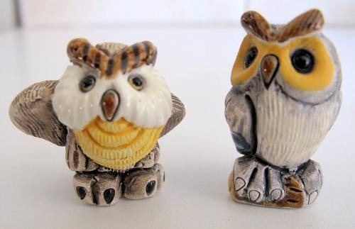 A CLOISONNE OWL AND 7 OTHER CERAMIC OWLS