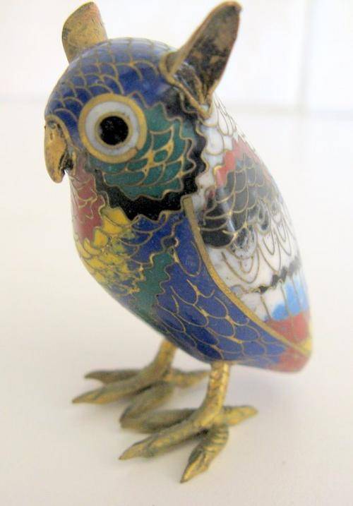 In good condition. The cloisonne owl measures 5cm in height and the others range from 2,2cm in height to  5,5cm.