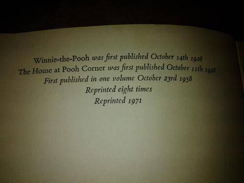 Winnie -the-Pooh was first published in October 14th 1926, Reprinted in 1971.