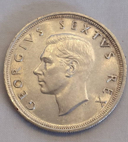 A collectible South African King George VI 5 1949 shilling coin in good condition.