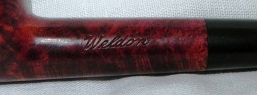 A collectible Weldon pipe! Stampings: "Weldon" liner on shank and "MADE IN FRANCE" around bottom of shank. Never smoked. Interesting "Old School" button: Near pristine condition as per pics: