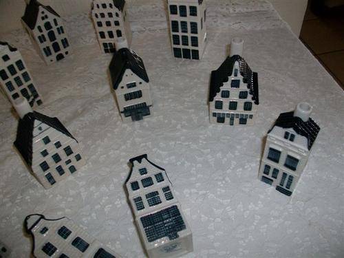 Hole collection of 12 klm delft houses for the collector they are unsealed and have no alcohol at all these were made with no alcohol in them , there are two with damage one has a hairline crack noted by the chimney , other has a chip noted at the bottom numbers of all the houses 71,29,47,11,30,70,35-has hair line crack 87, 46 is chipped, 37 ,41 and 6please note postage will be R55