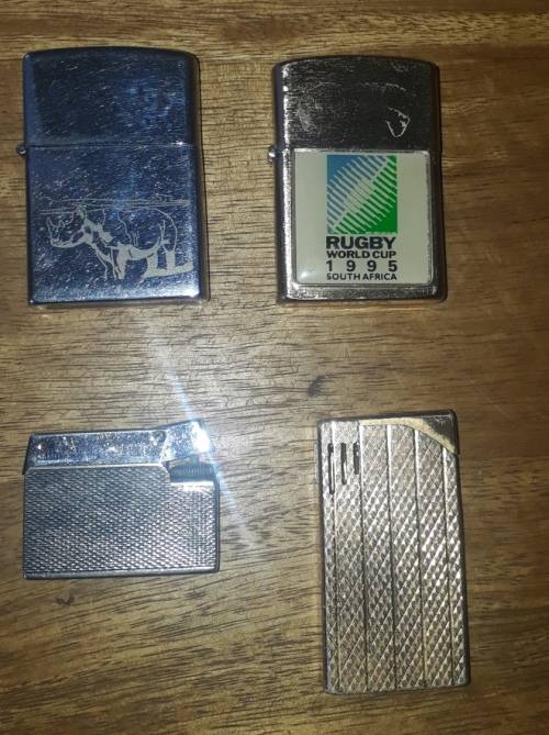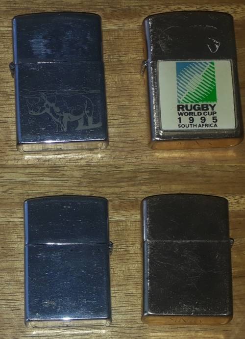 This collection includes 2 Zippo type lighters. The original owner believes these two lighters have not been used. One of them has an engraving on of a rhino. The other has the logo of the 1995 World Cup Rugby.
