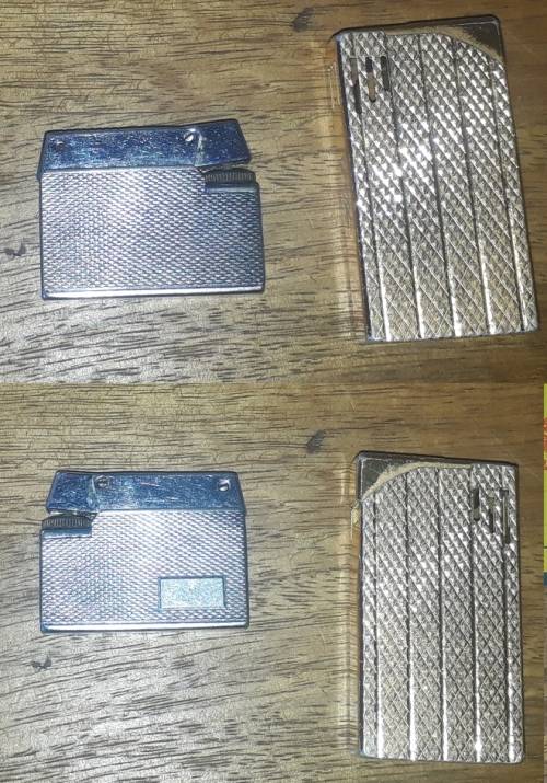 I could not see any brand names on the other two lighters. One has a smooth section where a name can be engraved and the thinner gold lighter has the name Bobs engraved on the side. (See photograph)