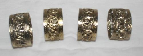 A COLLECTION OF FOUR GOLD COLOR METAL SERVIETTE RINGS