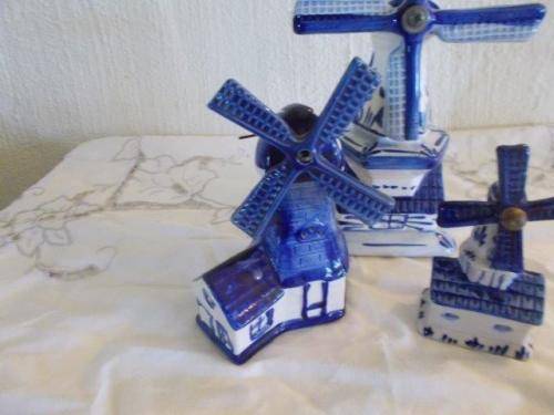Kindly note postage will be R70 nice collection of blue and white dutch style windmill ornaments items are in good used condition one is marked delft other are no name