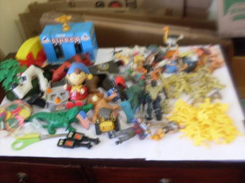 A COLLECTION OF VARIOUS TOYS ...PLASTIC FARM ANIMALS SOLDIES AND MORE