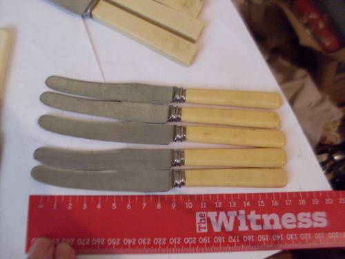 2 KNIFE SHARPENERS 5 X VINERS LTD SHEFFIELD KNIVES 9 X ARTHUR E MARTIN & CO SHEFFIELD KNIVES 6 X LEONARD DONALD & STANLEY SHEFFIELD KNIVES 8 ODD KNIVES POSTAGE IS R80