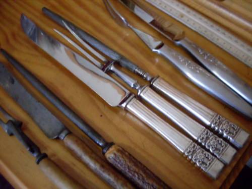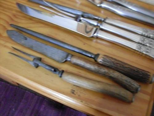 A COLLECTION OF VINTAGE CARVING SETS...SEE PICS