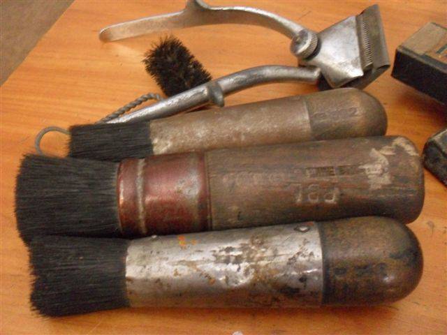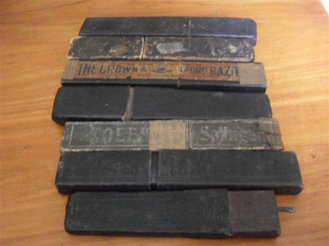 WOW....A COLLECTION OF 7 VINTAGE CUT THROATS.....A CLIPPER...A SHARPENING STONE.....AND 3 X SHAVING BRUSHES