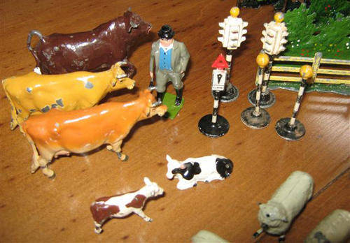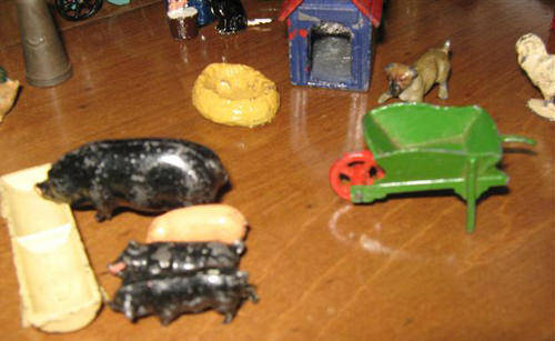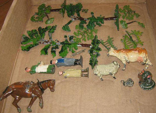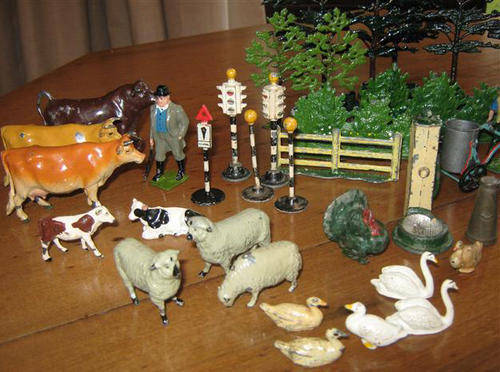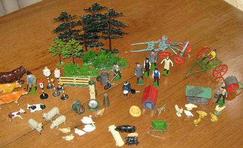 WHAT COULD BE MORE PERFECT THAN THIS FARM SET FOR YOUR YOUNG SON, AN OPPORTUNITY TO PLAY WITH TOYS JUST AS HIS DAD DID IN HIS YOUTH, OR SOMETHING TO HAVE ON HAND WHEN THE GRAND CHILDREN VISIT, GUARANTEED TO KEEP THE KIDS BUSY WHILE THE GROWN UPS CATCH UP WITH THE FAMILY GOSSIP. PERHAPS GRANDPA WILL BE TEMPTED TO JOIN IN !!!