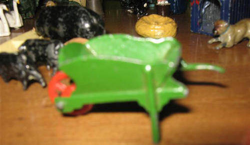 THE ONE HANDLE IS OFF THE WHEEL BARROW.