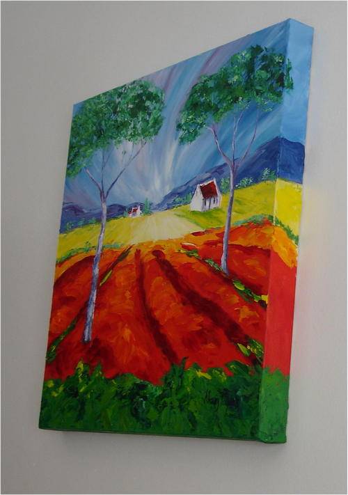 Created with the use of a palette knife and thickly applied oil paints for a textured artwork