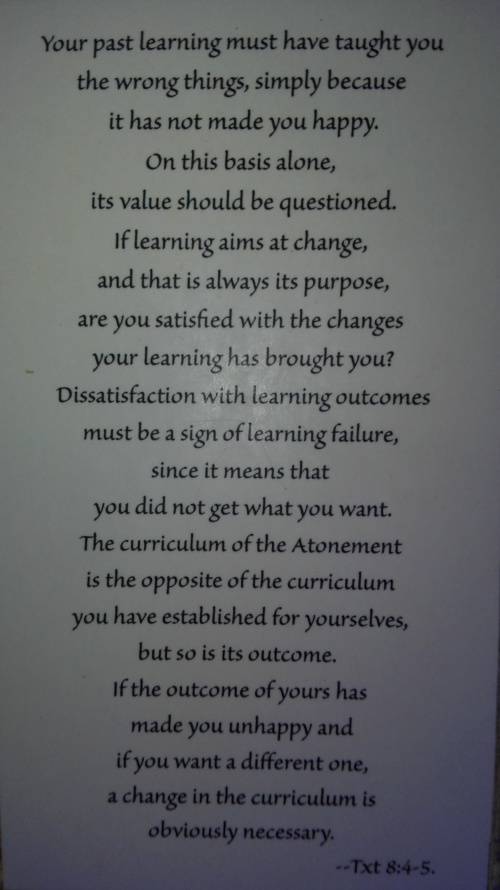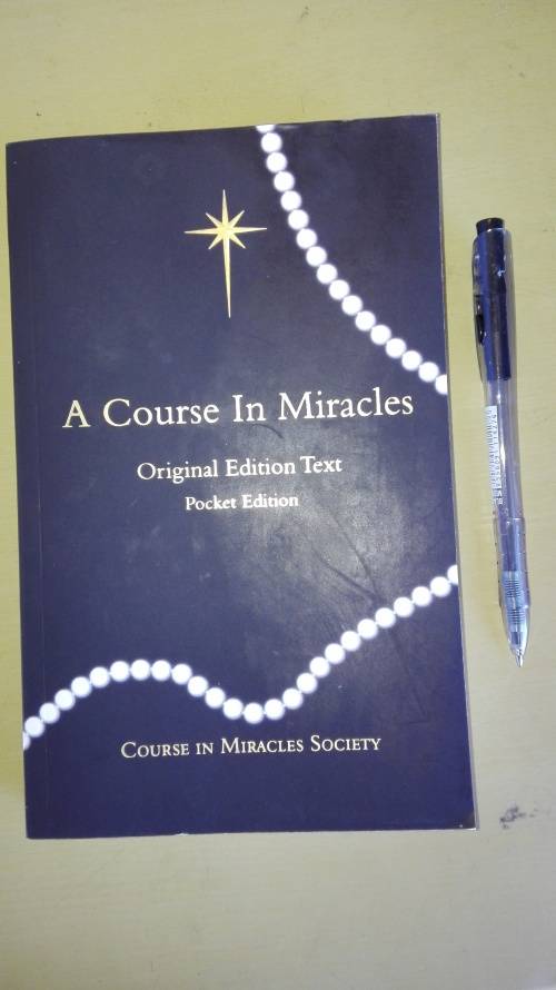 ' From Goodreads ; The Pocket Edition Text contains the complete and unabridged Text portion of A Course in Miracles - Original Edition as it was completed by Helen Schucman and Bill Thetford in 1972. Taken from the original manuscript for the Course, the only editing that has been done to this great spiritual classic has been to correct occasional typographic and spelling errors and to render capitalization and punctuation consistent. This Text volume is the companion to the popular ACIM Pocket Edition Workbook/Manual published by Course in Miracles Society. We call it a pocket edition because the book is designed to go anywhere with the student it is only 8 x 5 and just less than 1 in thickness. You can toss it in a backpack, briefcase or even a lady's purse. Like the Pocket Edition of the Workbook, the Pocket Edition Text is designed for rough treatment it is printed on a durable paper and has a laminated cover that resists spots and staining. "