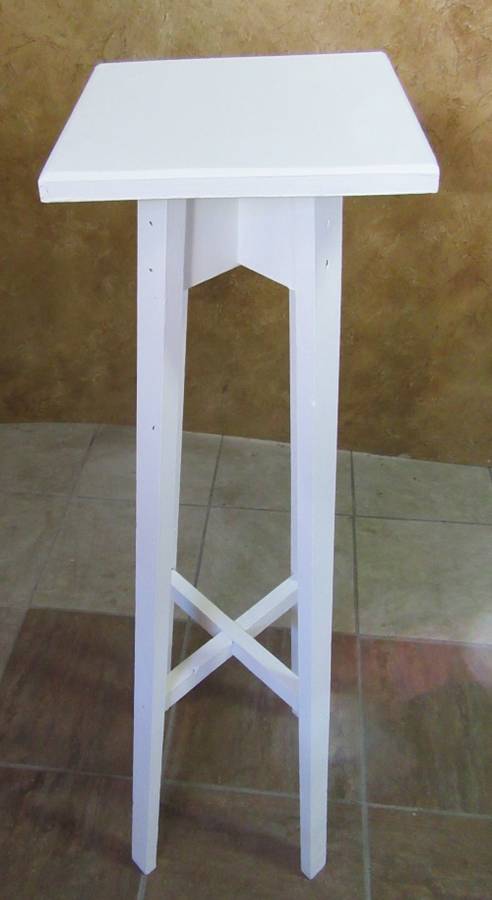 A CRISP WHITE SOLLID WOOD TALL PLANT STAND TABLE