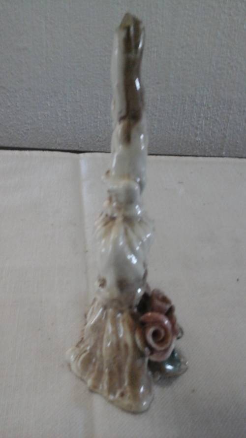 A CUTE AND COLLECTIBLE CERAMIC WITCHES BROOM. WITH FLOWERS ON THE BRISTLES. VERY UNUSUAL
