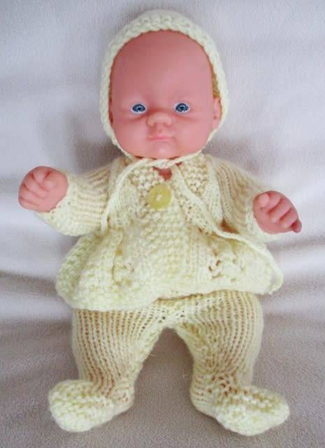 21CM TALL - HAS A SMALL MARK ON ONE ARM (LAST IMAGE) OTHER THAN THAT IN VERY GOOD CONDITION WEARING A CUTE KNITTED OUTFIT - ALL SNUG FOR THE WINTER! REFER