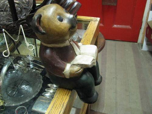 A LOVELY VINTAGE WOODEN CARVED AND PAINTED TEDDY