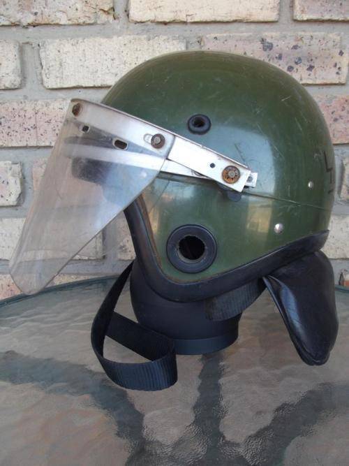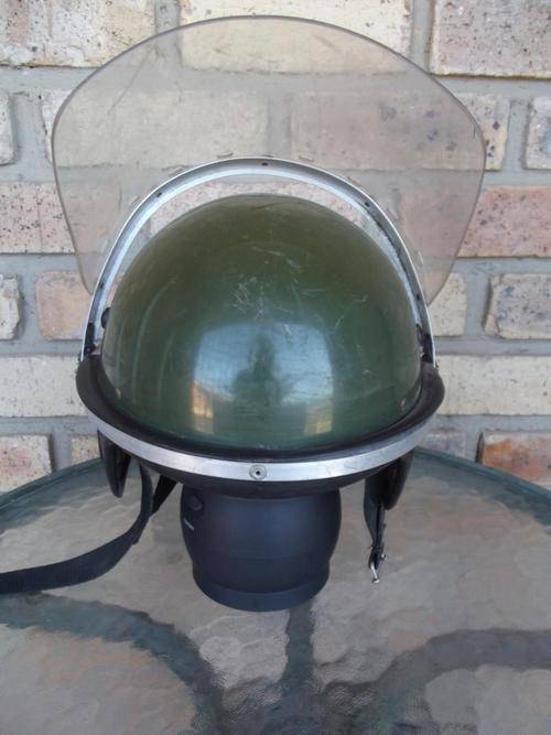 On Offer is a Dark Green Riot Helmet SADF/SAP