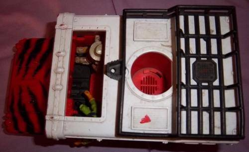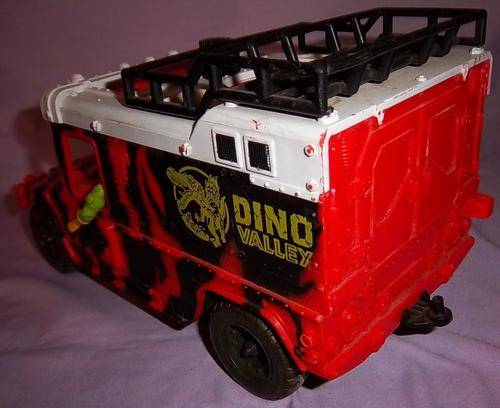 A DINO VALLEY CAR WITH X2 FIGURES. THE FIGURES ARE IN FAIR CONDITION. THE CAR IS MISSING SOME SMALL ITEMS AND THE COVER FOR WHERE THE BATTERIES GOES, I DID NOT TEST IT SO I DON'T KNOW IF IT WORKS. SOLD AS IS