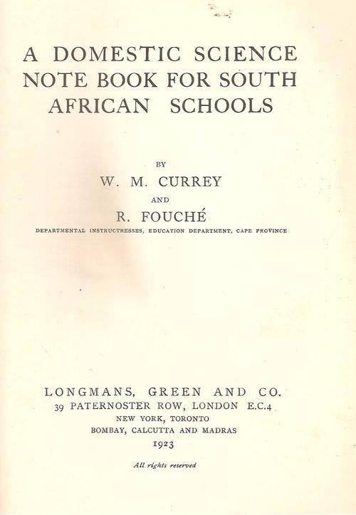 A Domestic Science Note Book for South African Schools By: W.M. Currey & R. Fouche