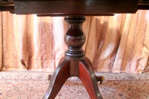 This beautiful and well made stylish vintage drop leaf occasional/dining table is ideal as a display table for vases, choice pieces in a foyer or dining room etc. The leg section of this table is a feature on its own. The table measures 97.5cm wide x 64cm (closed) 121cm (open) x 77cm high and has little age and usage related wear and tear. The table has beautiful brass capped feet and is on castors. This table is big enough to have as extra seating in a dining room on larger occasions. Please view pics carefully to fully appreciate this lovely occasional table and to confirm the condition.