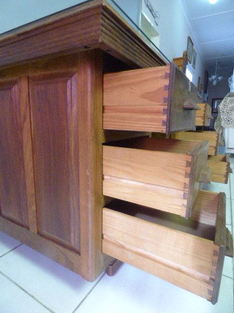 THIS FABULOUS "LARGE" VINTAGE SIX DRAWER SOLID TEAK DESK WITH A GLASS OVERLAY IS IN VERY GOOD CONDITION. THIS GORGEOUS DESK WILL ADD A WARMTH TO YOUR STUDY/ WORKROOM AND HAS LOADS CHARACTER. THE DESK MEASURES APPROXIMATELY 152cm LONG x 91cm WIDE x 77cm HIGH. IT WOULD BE AWESOME IN YOUR STUDY OR OFFICE. THE DESK HAS A LOVELY BIG WORK SURFACE. THIS BEAUTY IS SOLID AND STURDY AND WELL MADE.