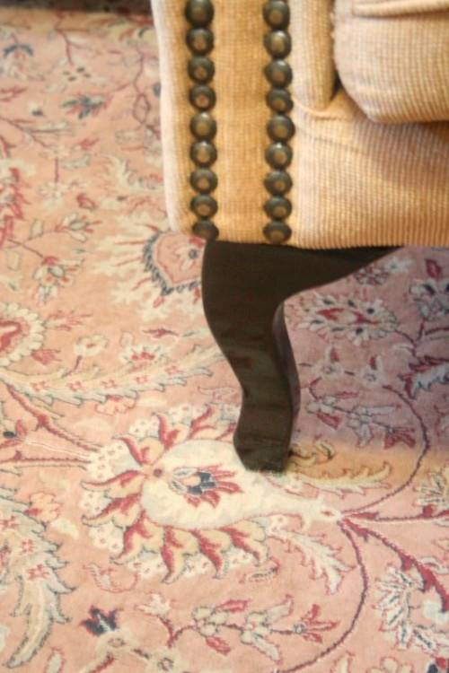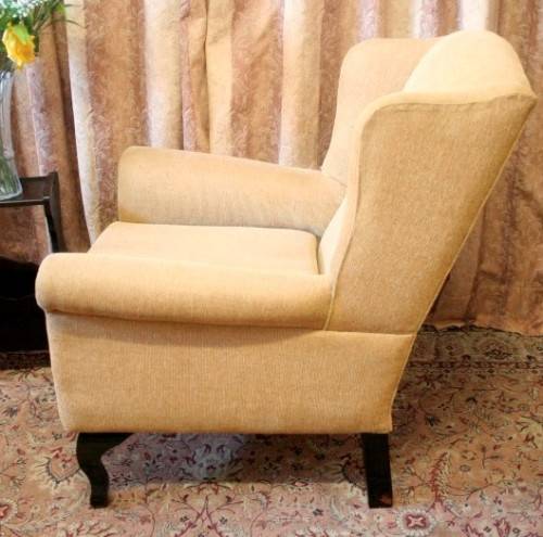 This beautiful wing back chair is in great condition for the age! The chair has minimal wear and tear (please see the pics), the fabric is in otherwise great condition (it could have a good cleaning), the studs are all in good condition and add a nice feature to the chair. It's a large wing back and it is very comfortable! The chair sits firmly on the ground with two styled feet in the front and straight feet at the back. This chair is lovely and perfect as a 'comfortable reading' chair...this gorgeous chair measures approximately 88cm x 81cm x 95cm high. Please view the pics carefully to fully appreciate this wing back and to confirm the condition.