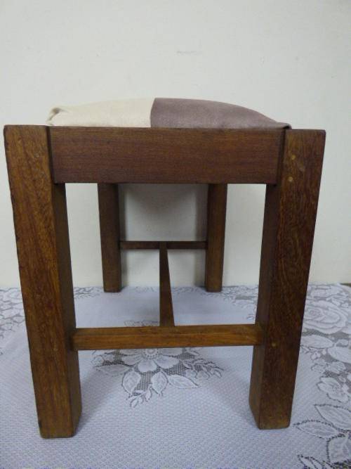 A GORGEOUS VINTAGE SOLID WOODEN STOOL WITH A LOVELY TWO TONE UPHOLSTERED CUSHION/ SEAT; VERY STYLISH, SOLID AND COMFORTABLE. THIS LOVELY STOOL WOULD MATCH ANY DECOR AROUND THE HOME AND MEASURES APPROXIMATELY 35cm x 50cm x 47cm HIGH. THE STOOL WOULD ALSO BE GREAT AS A PIANO STOOL OR EVEN A DRESSING TABLE STOOL.