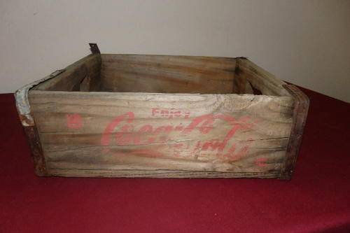 THIS FANTASTIC AND HUGELY COLLECTABLE ORIGINAL VINTAGE (c1950's) COCA-COLA BOTTLE CRATE HAS THE WRITING IN RED ON THE WOODEN BACKGROUND. THE "NEWER" CRATES HAVE THE COCA COLA WRITING IN WHITE IN A RED BACKGROUND. THE CRATE MEASURES 34.5cm x 32cm AND IS JUST OVER 12cm TALL. THIS IS A REALLY EXCITING FIND.