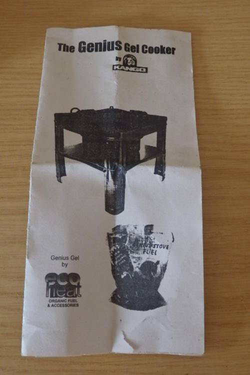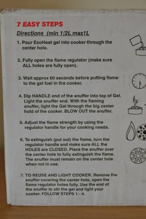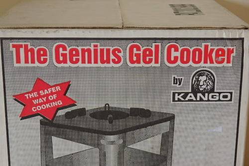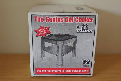 THIS FANTASTIC AND VERY PRACTICAL ORIGINAL CAMPING "GEL COOKER" BY KANGO IS STILL IN ITS ORIGINAL SEALED BOX (I HAVE NOT OPENED THE BOX - I USED THE PICS OF A PREVIOUS LISTING). THE COOKERS ARE PERFECT FOR CAMPING TRIPS, EMERGENCY USE - WHEN WE HAVE POWER FAILURES AND ARE SAFE TO USE. THE COOKER USES ECO FRIENDLY/ ORGANIC GEL INSTEAD OF LIQUIDS THAT CAN SPILL AND IGNITE. THE GEL CAN BE PURCHASED FROM MOST LEADING HARDWARE AND OUTDOOR STORES.