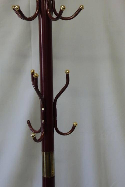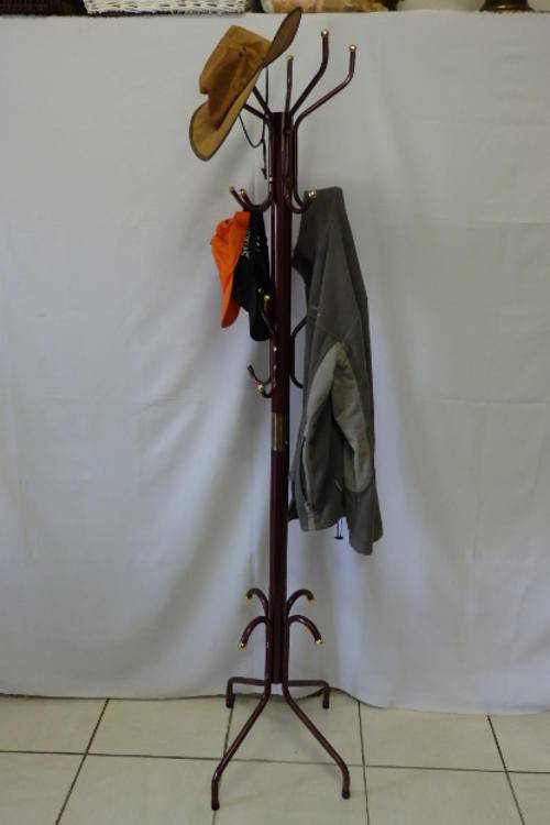 THIS FANTASTIC AND VERY PRACTICAL "TALL" BURGUNDY AND GOLD (METAL) COAT, HAT AND UMBRELLA STAND MEASURES A VERY DECENT 1.9m TALL (1900mm) AND IS IN GOOD CONDITION WITH MINOR AGE AND USAGE RELATED WEAR AND TEAR. THE STAND HAS A SERIES OF HANGERS AT DIFFERENT HEIGHTS WHICH ARE PERFECT FOR THE WHOLE FAMILY. PLEASE VIEW THE PICS CAREFULLY FOR THE GENERAL CONDITION OF THE STAND. WHAT YOU SEE IS WHAT YOU GET.