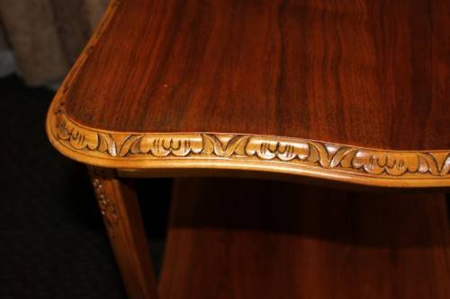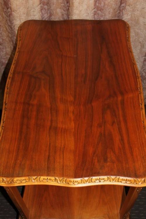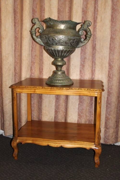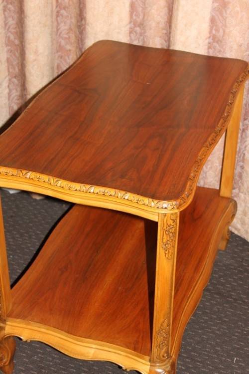 THIS FANTASTIC BURMESE TEAK DOUBLE SHELF SERVING HATCH TABLE WITH AMAZING HAND CARVED DETAILING MEASURES 825mm LONG x 525mm WIDE x 715mm HIGH. THE HATCH TABLE HAS CARVED DETAILING AROUND THE TOP THAT FLOWS INTO THE INCREDIBLE CARVED DETAILING OF THE LEGS AND STYLED FACADES. THE HATCH TABLE MAKES A STATEMENT AND NO EXPENSE WAS SPARED IN MAKING THIS HATCH TABLE A TOP-END HIGH QUALITY PIECE THAT WOULD BE FOUND IN THE MOST DISCERNING HOMES. THERE IS MINIMAL/ NORMAL USAGE RELATED WEAR AND TEAR. PLEASE VIEW THE PICS CAREFULLY TO FULLY APPRECIATE THIS BEAUTIFUL BURMESE TEAK DOUBLE SHELF SERVING HATCH TABLE AND TO CONFIRM THE CONDITION.