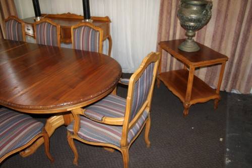 THE FOLLOWING PICS ARE FOR VISUAL EFFECT ONLY AND SHOW THE DININGROOM SUITE, BUFFET SERVER, SERVING HATCH TABLE AND THE LAMPS. PLEASE VIEW THE OTHER LISTINGS IF YOU WOULD LIKE TO BID ON THE OTHER PIECES.