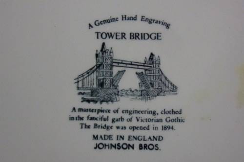 THIS FANTASTIC "CLASSIC" ENGLISH MADE JOHNSON BROTHERS (BLUE AND WHITE) TOWER BRIDGE PORCELAIN PLATE MEASURES 25.5cm ACROSS AND IS IN GREAT CONDITION WITH NO CHIPS OR CRACKS IN THE PLATE. THIS LARGER COLLECTIBLE PLATE WOULD MAKE A STUNNING ADDITION TO ANYONE'S COLLECTION.