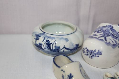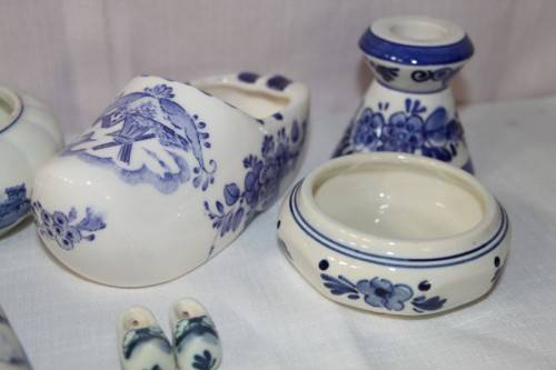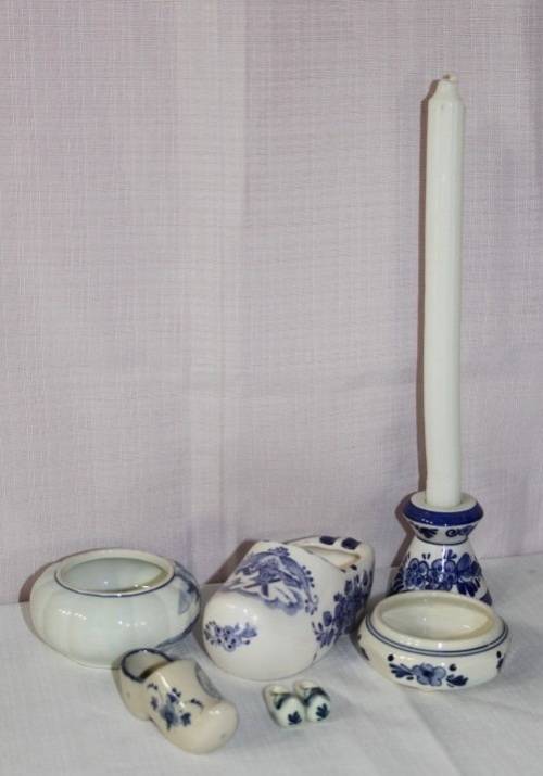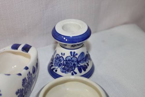 THIS FANTASTIC COLLECTION OF ASSORTED BLUE AND WHITE PORCELAIN INCLUDES DELFT, ZENITH, ELESVA AND MORE. THE JOB LOT HAS A CLOG ASHTRAY, TWO BOWLS, A CANDLE HOLDER AND VARIOUS TIT-BITS. THE COLLECTION IS IN GREAT CONDITION, AND I DO NOT SEE ANY CHIPS OR CRACKS IN THE PORCELAIN. THE CANDLE IS NOT INCLUDED. PLEASE VIEW THE PICS CAREFULLY TO FULLY APPRECIATE THIS WONDERFUL BLUE AND WHITE PORCELAIN COLLECTION AND TO CONFIRM THE CONDITION. YOUR ONE BID GETS THE LOT