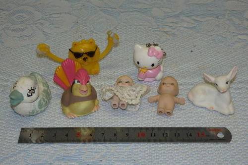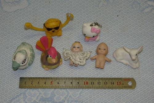 THIS FANTASTIC COLLECTION OF SEVEN ASSORTED ORNAMENTS INCLUDE A CERAMIC KEWPIE DOLL, A FINGER PUPPET, A HELLO KITTY ORNAMENT AND MORE. THE COLLECTION IS IDEAL FOR A PRINTERS TRAY. YOUR ONE BID GETS THE LOT.