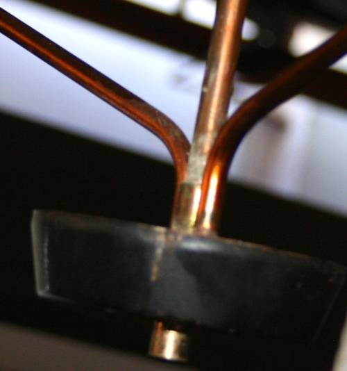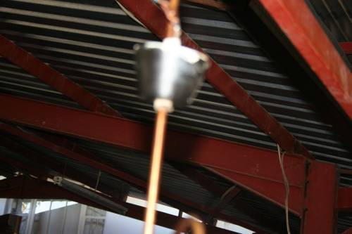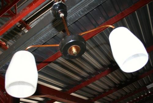 A FANTASTIC COPPER & METAL 2 TIER CEILING LIGHT WITH TWO CRISP WHITE GLASS SHADES STUNNING!!!