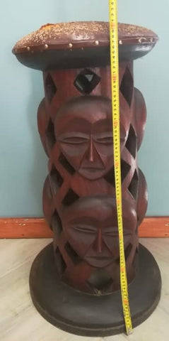 This amazing hand carved bar stool with a Seal skin seat stands 76cm high and is 46cm across the base. The wood is in great condition however the seat has age related wear. This is a heavy sturdy stool that would make a striking feature as a stand alone in a pub room or lapa. Please note the stool is sold sold as is. Please view the pics carefully to fully appreciate stunning bar stool and to confirm the condition as they form part of the description.