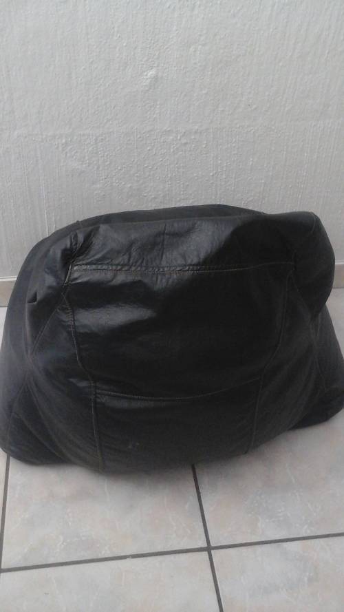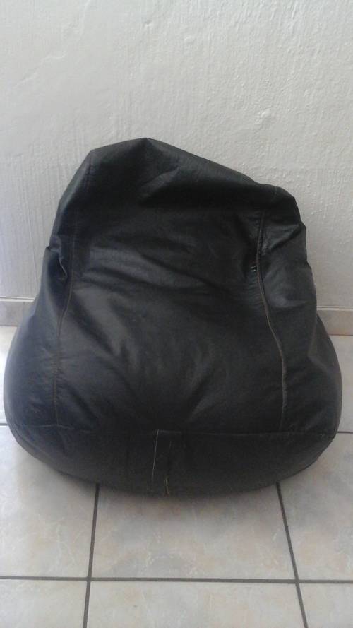 A FANTASTIC LITTLE BEAN BAG IN THE SHAPE OF AN ARMCHAIR. MADE FROM FAUX LEATHER VERY LIFELIKE