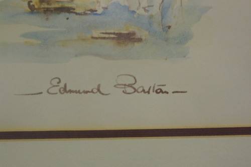 FROM THE INTERNET: Edmund Barton is an international artist producing artwork covering a vast range of subject matter and styles. Based in Gordons Bay near Cape Town in South Africa he operates his own galleries and most of his works are commissions. On the following pages you will see a cross section of paintings for sale and the artist welcomes commissions on any of the subjects shown.