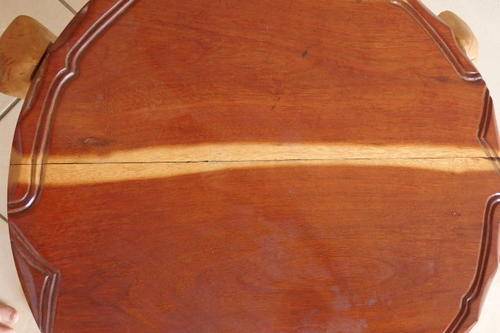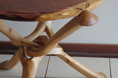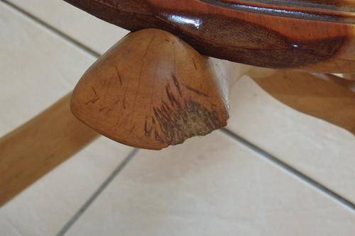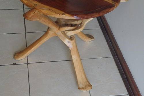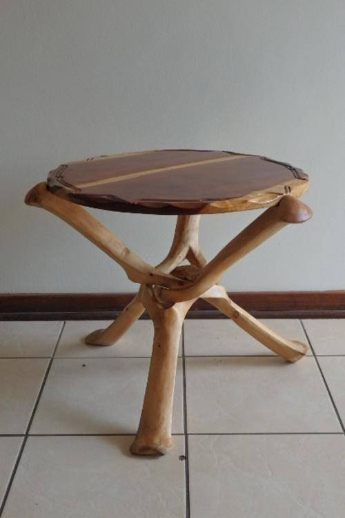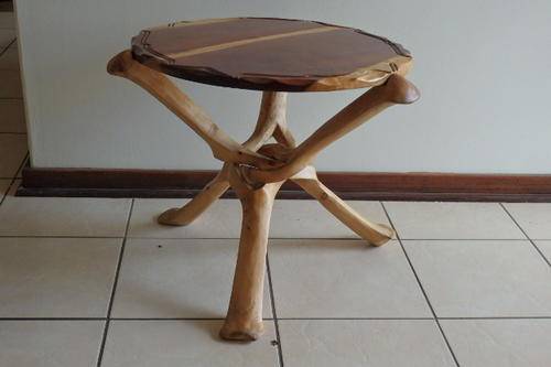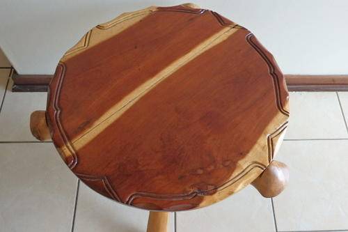 THIS FANTASTIC SOLID WOODEN KIAAT AFRICAN "THREE-LEGGED" OCCATIONAL TABLE MEASURES A VERY DECENT 600mm ACROSS x 500mm HIGH. THE LEGS OF THE TABLE ARE CARVED FROM A SINGLE PIECE OF WOOD AND HAVE AN INTER-LOCKING DESIGN. THE TABLE TOP CAN BE REMOVED AND THE LEGS FOLDED UP FOR EASY STORAGE. PLEASE VIEW THE PICS CAREFULLY FOR THE GENERAL CONDITION OF THE TABLE AS THEY FORM PART OF THE DESCRIPTION.