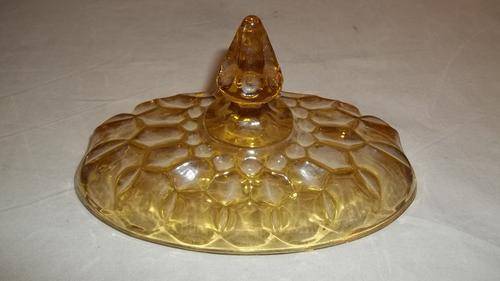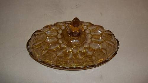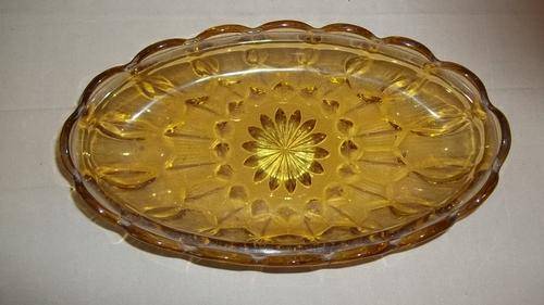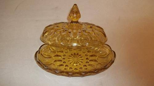 THIS STUNNING VINTAGE GLASS BUTTER DISH IS DONE IN A VERY "RETRO" DEEP YELLOW GLASS AND HAS EXQUISITE DESIGN WORK SYNONYMOUS OF THE 1970's. THE BUTTER DISH MEASURES 18cm x 10cm AND HAS NI CHIPS OR CRACKS. THIS IS AN AWESOME BUTTER DISH THAT WOULD LOOK GREAT ON ANY TABLE.
