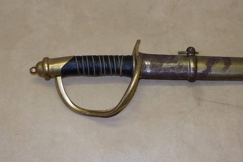 AT THE OUTBREAK OF THE AMERICAN CIVIL WAR, THERE WERE TWO TYPES OF SABERS ISSUED TO THE FEDERAL CAVALRY: “LIGHT” AND “HEAVY”. THE LIGHT VERSION WAS POPULAR, BUT THE HEAVY MODEL, DUBBED THE “OLD WRIST BREAKER” WAS THE ONE WORTH OWNING, AS IT WAS A SUPERIOR SWORD. ITS 36" BLADE OFFERED BIG REACH ADVANTAGES OVER MOST SABERS, AND ITS SUBSTANTIAL WEIGHT GAVE IT EXCELLENT LEVERAGE. THE BRASS GUARD HAD THREE BARS TO PROTECT THE HAND AND THE GRIP WAS WIRE BOUND LEATHER AND CAPPED WITH A STURDY POMMEL. IN ITS DOUBLE RINGED, STEEL SCABBARD, IT COULD BE EASILY ATTACHED TO A SADDLE OR TO A BELT.