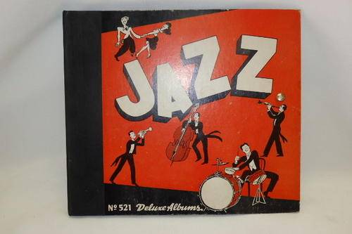 THIS FANTASTIC VINTAGE/ ANTIQUE? GRAMOPHONE "78 SPEED" JAZZ ALBUM COLLECTION WITH FOUR RECORDS IS TITLED "JAZZ No. 521" DELUXE ALBUM, ALTHOUGH I DON'T THINK TAT ALL FOR OF THE RECORDS ARE JAZZ RECORDS IS I LOOK AT THE TITLES. THE ALBUM COVER HAS SOME ARE AND USAGE RELATED WEAR AND TEAR, AND THE RECORDS LOOK TO BE IN GOOD CONDITION.