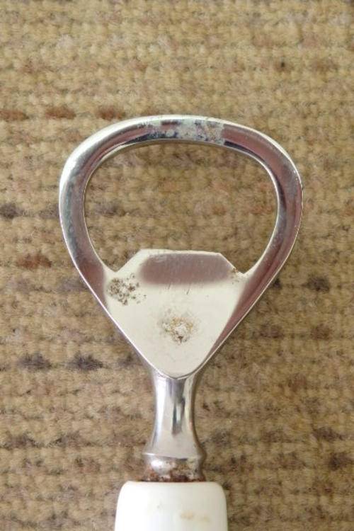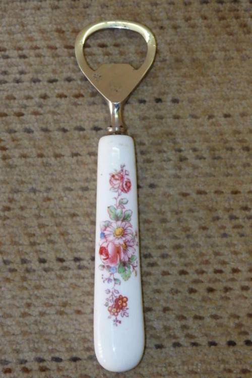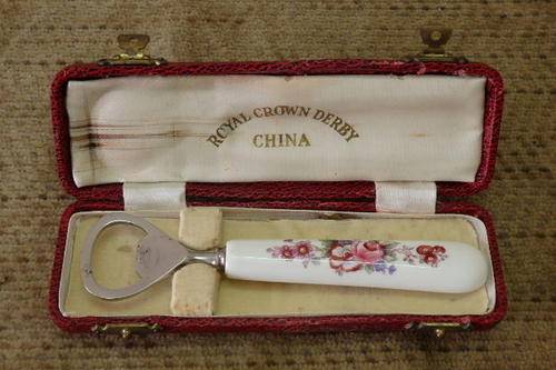 THIS FANTASTIC VINTAGE (c1950) BOXED ROYAL CROWN DERBY OF ENGLAND PORCELAIN HANDLED BOTTLE OPENER MEASURES 14.5cm LONG AND ALTHOUGH THERE IS A LITTLE AGE AND USAGE RELATED WEAR AND TEAR TO BOTH THE OPENER AND THE BOX, THE OPENER HAS NO CHIPS OR CRACKS IN THE PORCELAIN. PLEASE VIEW THE PICS CAREFULLY FOR THE GENERAL CONDITION OF THE BOTTLE OPENER.