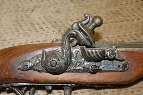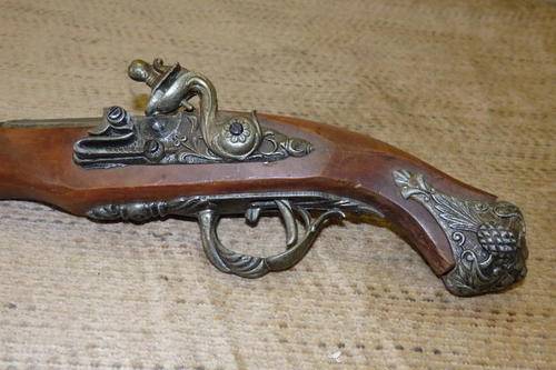 THIS FANTASTIC VINTAGE SPANISH "MADRID 1820" BLACK POWDER "DOUBLE BARREL" FLINTLOCK PISTOL MEASURES 29cm LONG AND IS A REPLICA OF THE PISTOL USED IN THE WARS AGAINST NAPOLEON. THE PISTOL IS A NON-FIRING REPLICA AND A REALLY NICE DISPLAY PISTOL. PLEASE VIEW THE PICS CAREFULLY FOR THE GENERAL CONDITION OF THIS PISTOL.