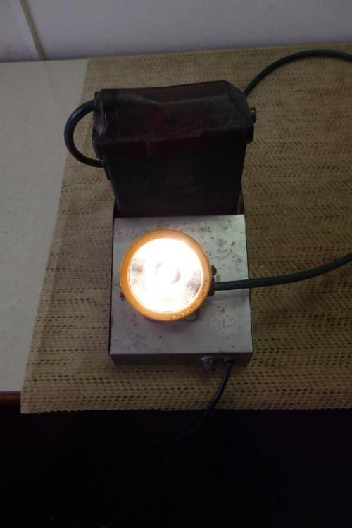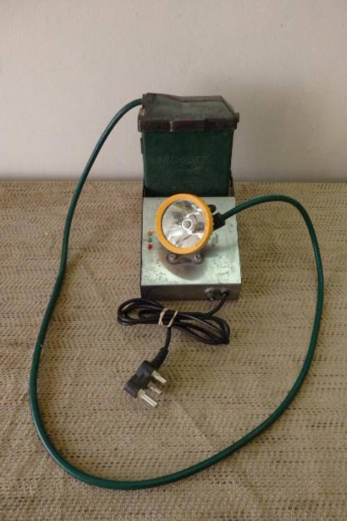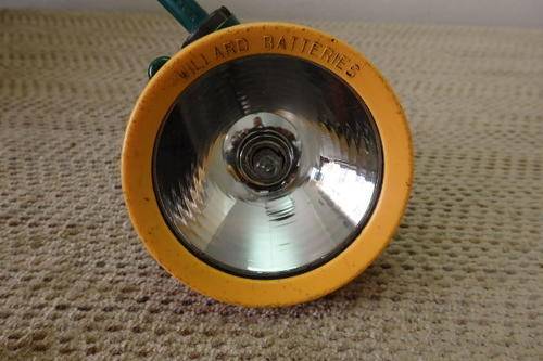 THIS FANTASTIC VINTAGE "WILLARD BATTERIES" MINERS LAMP PACK FOR HARD HATS HAS A 220v CHARGER AND IS IN WORKING CONDITION. THE BATTERY GETS CONNECTED TO THE MINERS BELT AND THE LAMP FITS ONTO THE MINERS HARD HAT. THE UNIT HAS SEEN SOME AGE AND USAGE RELATED WEAR AND TEAR, BUT IS STILL A GREAT ITEM TO HAVE. THE LAMP CAN ALSO BE USED ON THE CHARGER - GREAT FOR BRAAING ETC.